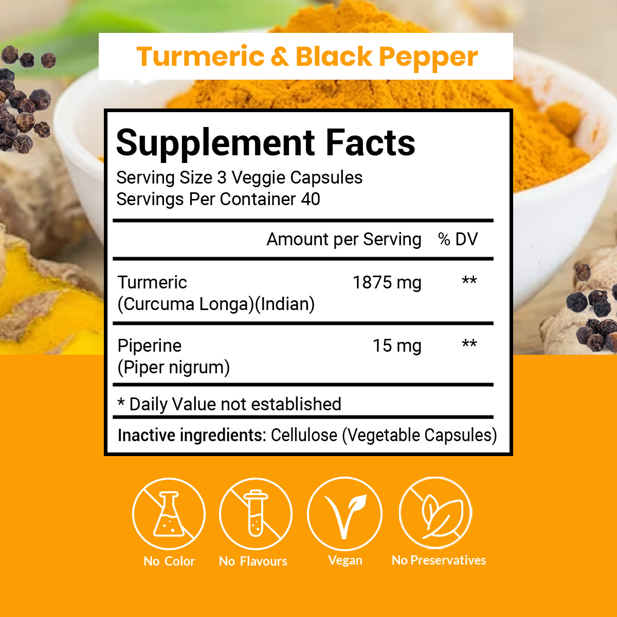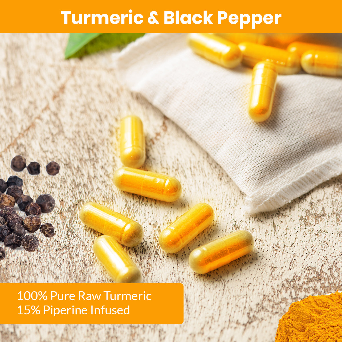 Turmeric & Black Pepper Capsules (Vegetarian, Powder)